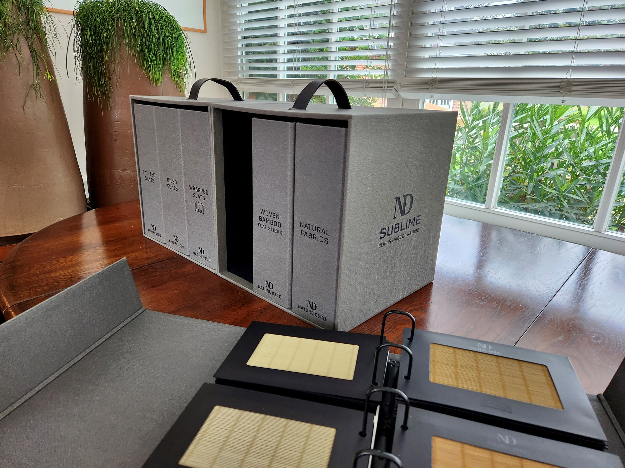 - 3 Kollektionsbüchern mit gewebten Materialien (für Raffrollos, Roll Ups und Rollos)